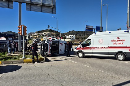 Bodrum’da ambulans önüne çıkan araca çarpmamak için devrildi