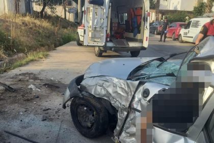 Muğla’nın Bodrum ilçesinde kontrolden çıkan otomobilin çöp konteynerine ve arkasındaki beton direğe…