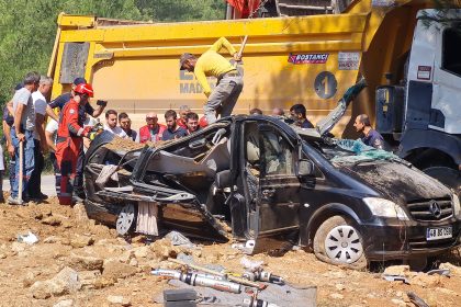 Muğla’nın Bodrum ilçesinde hafriyat yüklü kamyonun, minibüsün üzerine devrildiği kazada; bir kişi…