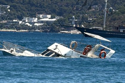 Muğla’nın Bodrum ilçesinde yer alan Torba Koyu’nda demirli ahşap tekne, dün (25…