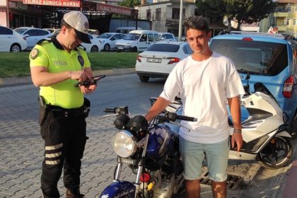 Fethiye’de motosiklette yatar halde seyreden sürücüye para cezası