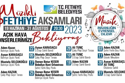 Fethiye Belediyesi’nin düzenlediği Müzikli Fethiye Akşamları programının bu akşam (19 Haziran 2023)…