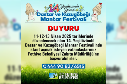Muğla’nın Fethiye ilçesinde düzenlenecek olan 14. Yeşilüzümlü Dastar ve Kuzugöbeği Mantar Festivali’nde…
