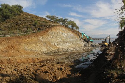 Fethiye Karataş Plajı’nda eski AK Parti Milletvekili Hasan Özyer’in otelinin önündeki tepe iş makineleriyle yok edildi