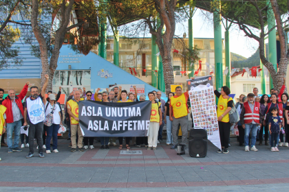 Muğla’da Fethiye Kültür Merkezi önünde, 10 Ekim Ankara Gar Katliamı’nda yaşamını yitirenler…