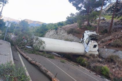 Muğla’nın Milas ilçesindeki Milas-Labranda yolunda, maden taşıyan kamyonun 70 metrelik uçuruma devrilmesi…