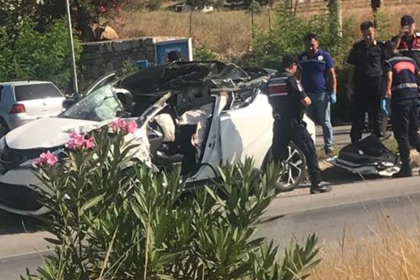 Muğla’nın Milas ilçesinde, Milas - Bodrum karayolu üzerinde bir otomobilin kamyona arkadan…