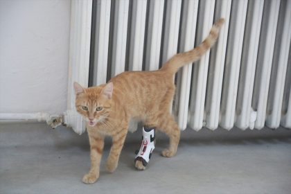 Milas’ta felçli kediye üç boyutlu yazıcıyla ortez yapıldı