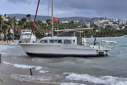 Bodrum’da fırtına nedeniyle sekiz tekne kıyıya sürüklendi