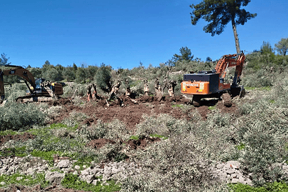 Muğla'nın Milas ilçesine bağlı Çamköy Mahallesi'nde YK Enerji tarafından zeytin ağaçlarının sökümü…