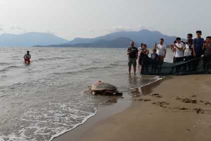 Muğla’nın Ortaca ilçesindeki İztuzu kumsalına yumurta bırakan caretta carettaya uydu takip cihazı…