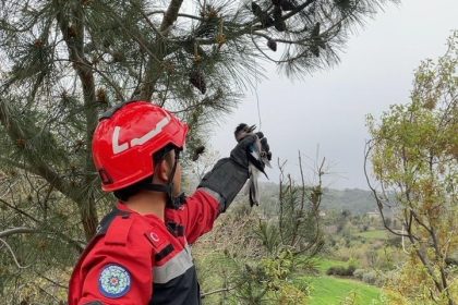 Seydikemer’de ağaçta mahsur kalan alakarga kurtarıldı