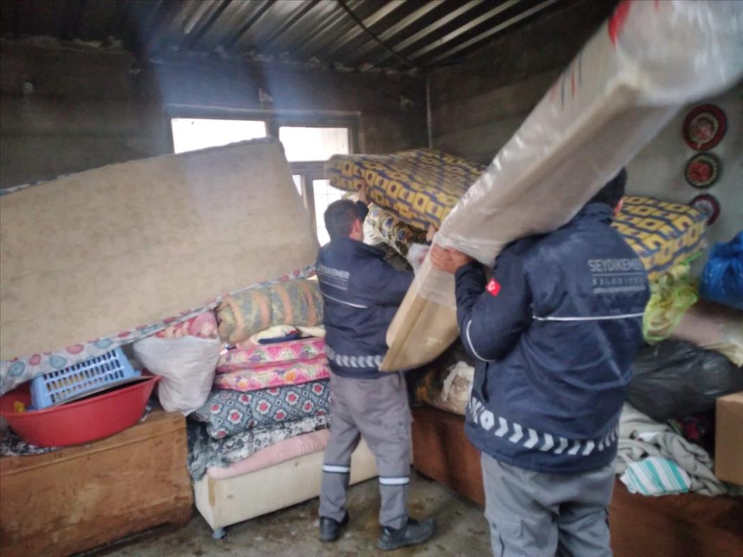 Seydikemer Belediyesi’nden evi yanan aileye eşya yardımı