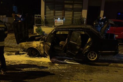 Milas’ta park halindeki bir otomobilde yangın çıktı