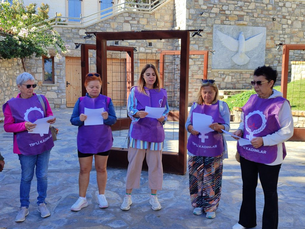 Muğla’nın Datça ilçesinde, 25 Kasım Kadına Yönelik Şiddetle Mücadele Günü dolayısıyla Türkiye İşçi Partili (TİP) kadınlar basın açıklaması yaptı. Açıklamada, erkek-devlet şiddetine, yoksulluğa, savaş politikalarına ve 11. Yargı Paketi’ne karşı mücadeleyi büyütme çağrısı yaptı.