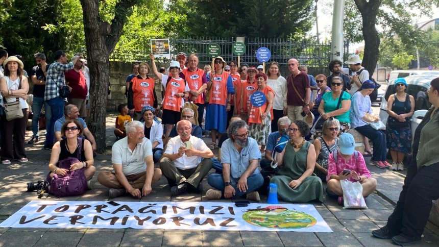 Meclis’te kanun teklifine ilişkin görüşmeler devam ederken; Türkiye’nin farklı noktalarındaki yerel mücadelelerin, ekoloji örgütlerinin ve yaşam savunucularının bir araya geldiği “Toprağımızı Vermiyoruz” kampanyası üyeleri, TBMM Dikmen Kapısı önünde eylemlerine devam ediyor.
