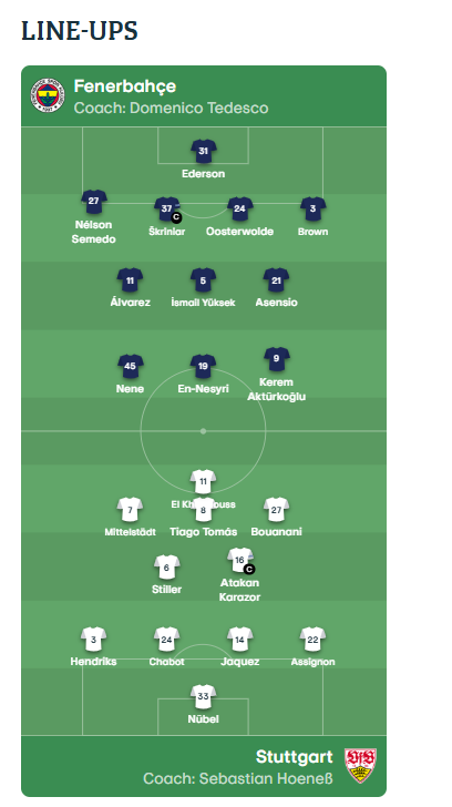Fenerbahçe, grubun ilk haftasında Dinamo Zagreb’e deplasmanda 3-1 mağlup olmuş, ikinci maçta ise Fransa temsilcisi Nice’i 2-1 yenmişti. Son lig maçında Fatih Karagümrük’ü 2-1 mağlup eden sarı-lacivertliler, Stuttgart karşısına moralli çıkıyor.
