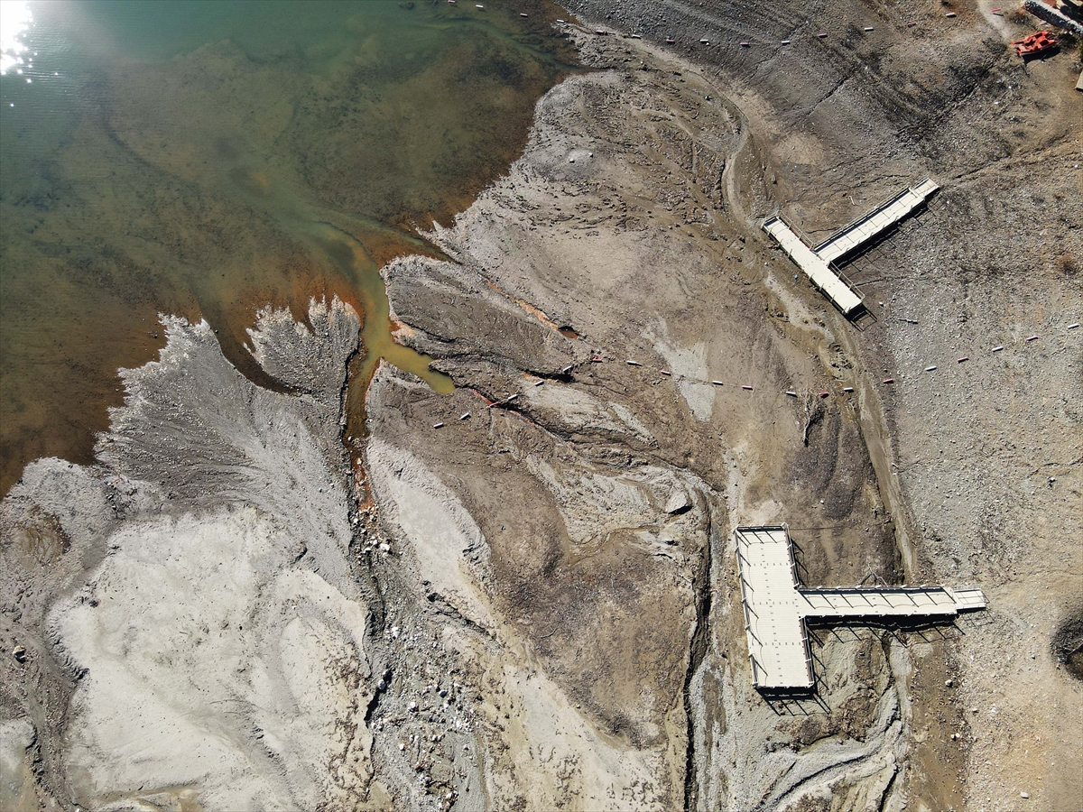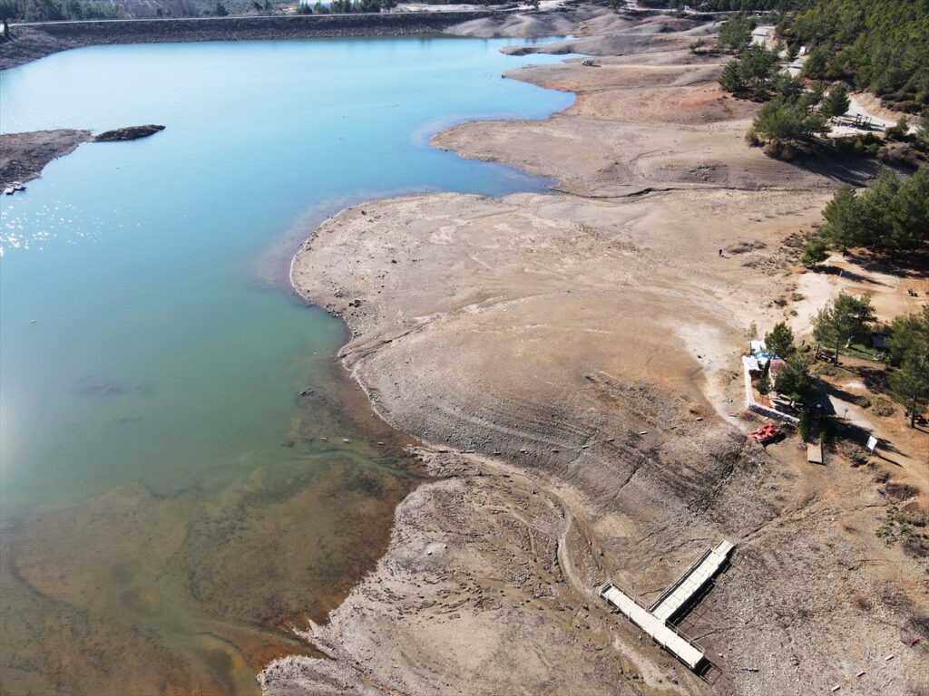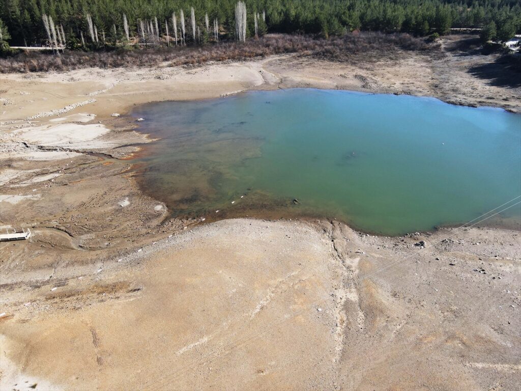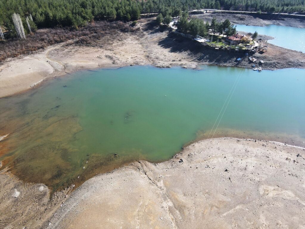 Kent merkezine 12 kilometre uzaklıktaki gölette suların kıyıdan yaklaşık 50 metre çekilmesiyle gölet etrafında adacıklar oluştu.