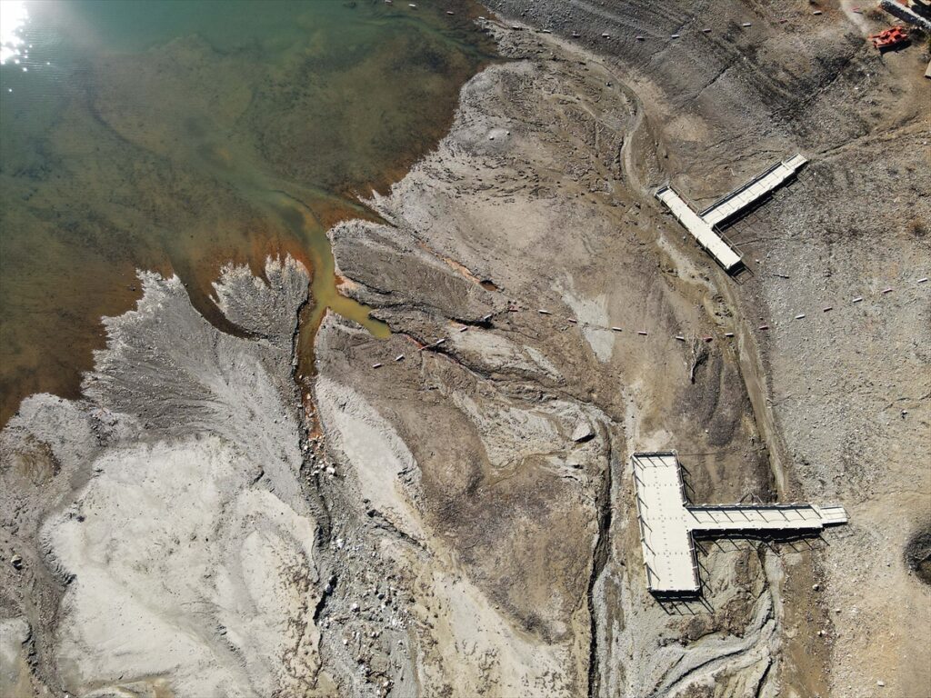 Kent merkezine 12 kilometre uzaklıktaki gölette suların kıyıdan yaklaşık 50 metre çekilmesiyle gölet etrafında adacıklar oluştu.