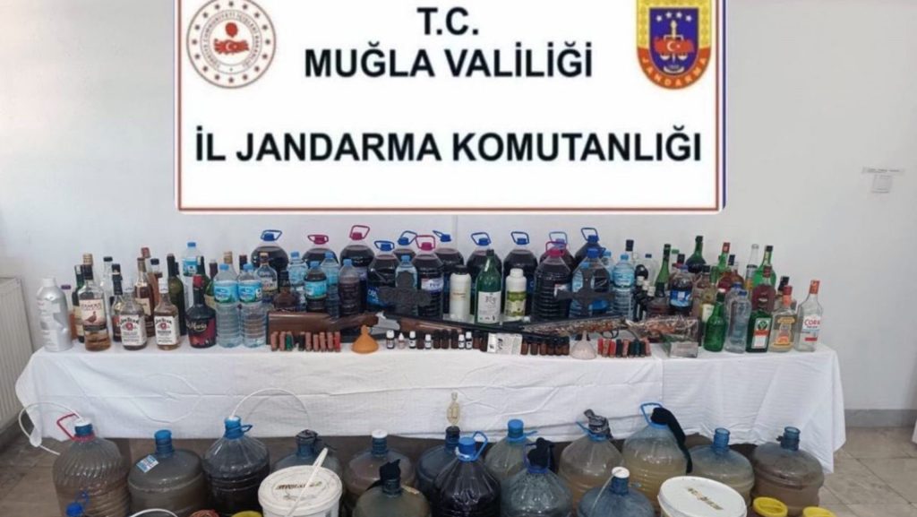 Muğla’nın Ula ilçesine bağlı Akyaka Mahallesi’nde; İl Jandarma Komutanlığı ekipleri, A.C’nin el yapımı kaçak alkol ürettiği ve bandrolsüz içki bulundurduğu bilgisine ulaşılması üzerine Muğla Cumhuriyet Başsavcılığı koordinesinde operasyon düzenledi.