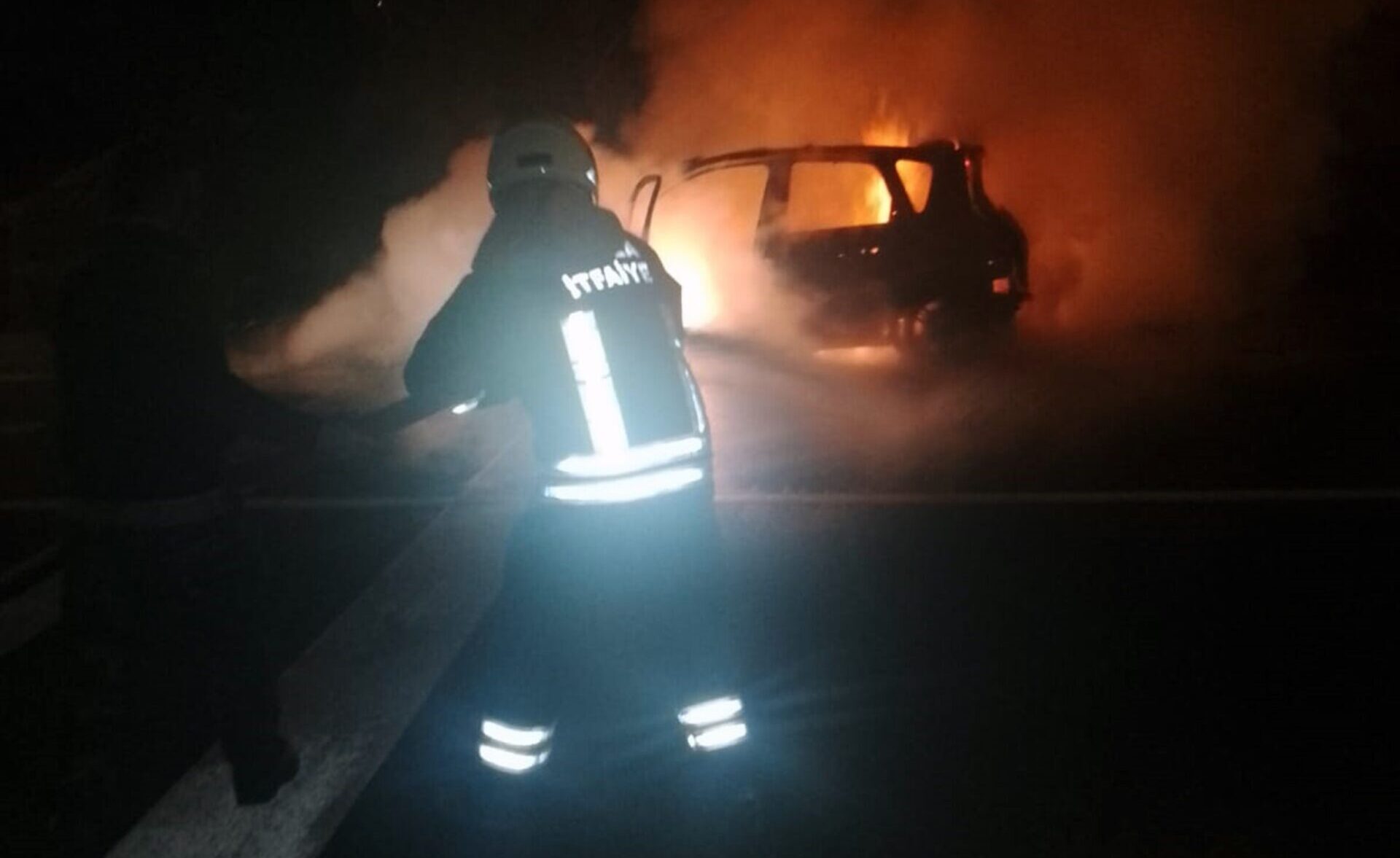 İtfaiye ekipleri müdahale ederek araç yangınını söndürülürken, otomobil kullanılmaz hale geldi.