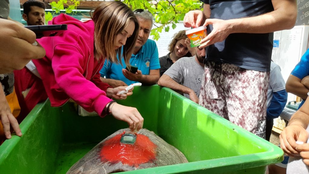 Muğla’nın Ortaca ilçesindeki İztuzu kumsalına yumurta bırakan caretta carettaya uydu takip cihazı takılarak denize bırakıldı.