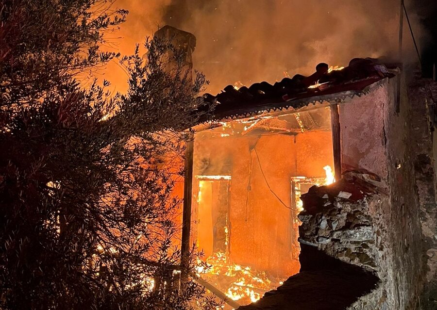 Muğla’nın Menteşe ilçesinde Denizova Mahallesi Köyiçi Sokak’ta Gülsüm Tolga’ya ait iki katlı ahşap evde yangın başladı.