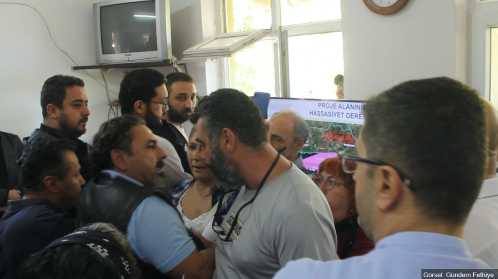 Toplantıda söz alan ve YK Enerji’de çalıştığını söyleyen Milas Örenli bir yurttaş, orman yangınlarında bölgede yaşayan yurttaşların yangının söndürülmesi adına mücadele ettiğini ifade ederek, toplantıya katılan ekolojistlere, “Biz yangına müdahale ederken bu çevreci arkadaşlarımız neredeydi” diye sordu.