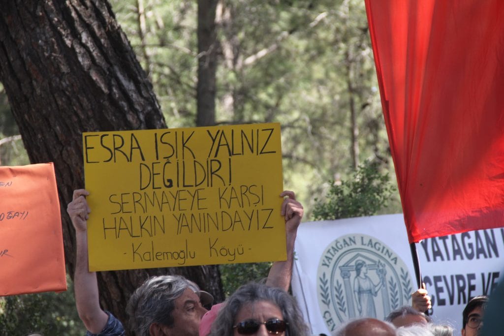 Alanda; “Limak defol, bu ormanlar bizimdir”, “Esra Işık onurumuzdur”, “Direne direne kazanacağız”, “Boyun eğme, toprağına sahip çık” ve “Akbelen bizimdir, bizim kalacak” sloganları atıldı.