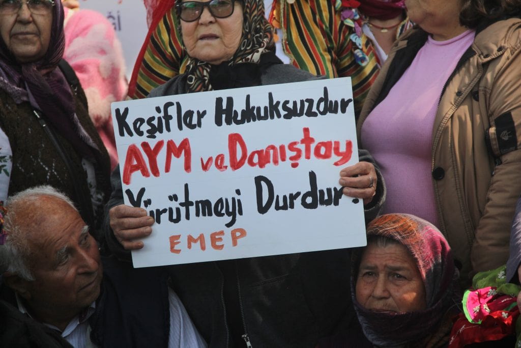 “Gözüm, kulağım Danıştay ve Anayasa Mahkemesi’nden gelecek bir durdurma kararında. Her güne umutla, inançla başlıyorum. Toprağımıza sahip çıkma emeklerimiz boşa çıkmayacak biliyorum. Bu şirketlere imtiyaz tanıyanlara, yolunu açanlara, biz köylüleri görmeyenlere buradan soruyorum: Siz hiç yüzyıllık emeğinizin, tüm geçmişinizin ve geleceğinizin bir gecede elinizden alınmasının ne demek olduğunu yaşadınız mı?”