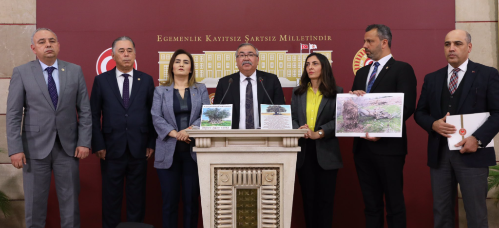 Cumhuriyet Halk Partisi milletvekilleri zeytinlik alanları madencilik faaliyetlerine açan yönetmeliğin iptali için Meclis’te basın açıklaması yaparak Danıştay’a seslendi.